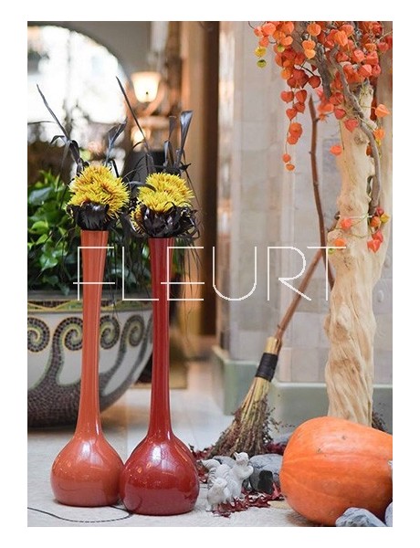 The unique shape of this ceramic vase resembles that of a calabash. Fits only a few stems of flowers but no more is needed for this statement piece. Height: 90 cm